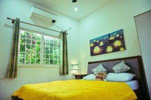 Thoughtfully curated spaces feature cozy living areas, elegant bedrooms, premium amenities, scenic hill views, natural airflow and tranquil surroundings, creating a serene, luxurious stay experience amidst the refreshing charm of Nandi Hills.